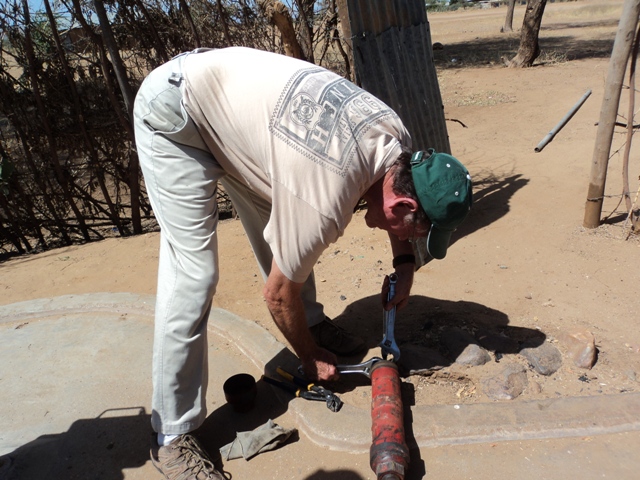 borehole, repaired the cylinder, added two new pipes and then reinstalled the pump.